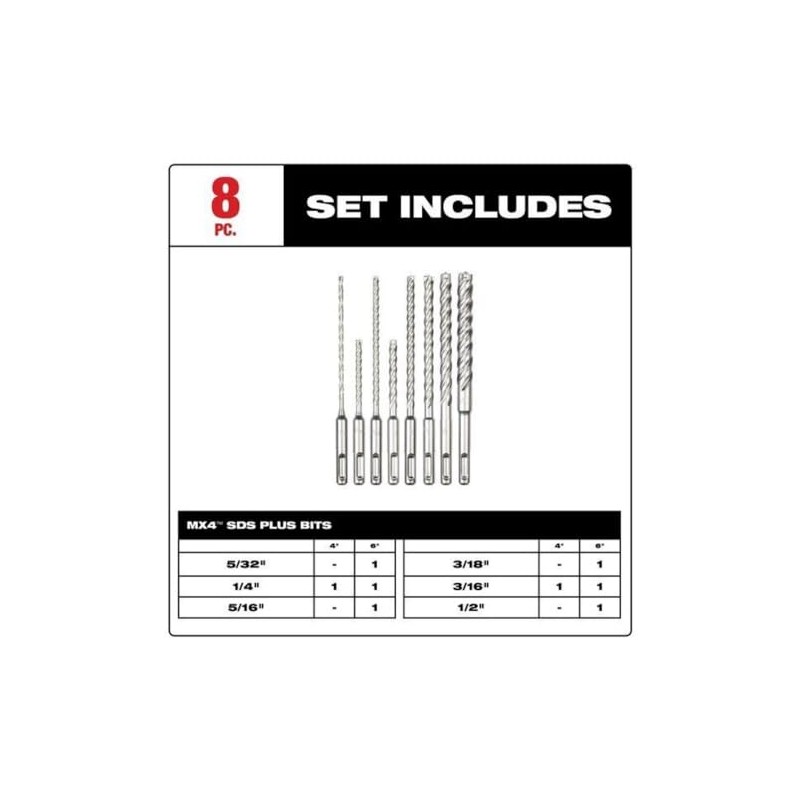 DAAGWOOD 48-20-7663 Fits Milwaukee Tool 8 Pc. 4-Cutter Mx4 SDS-Plus Rotary Hammer Drill Bit