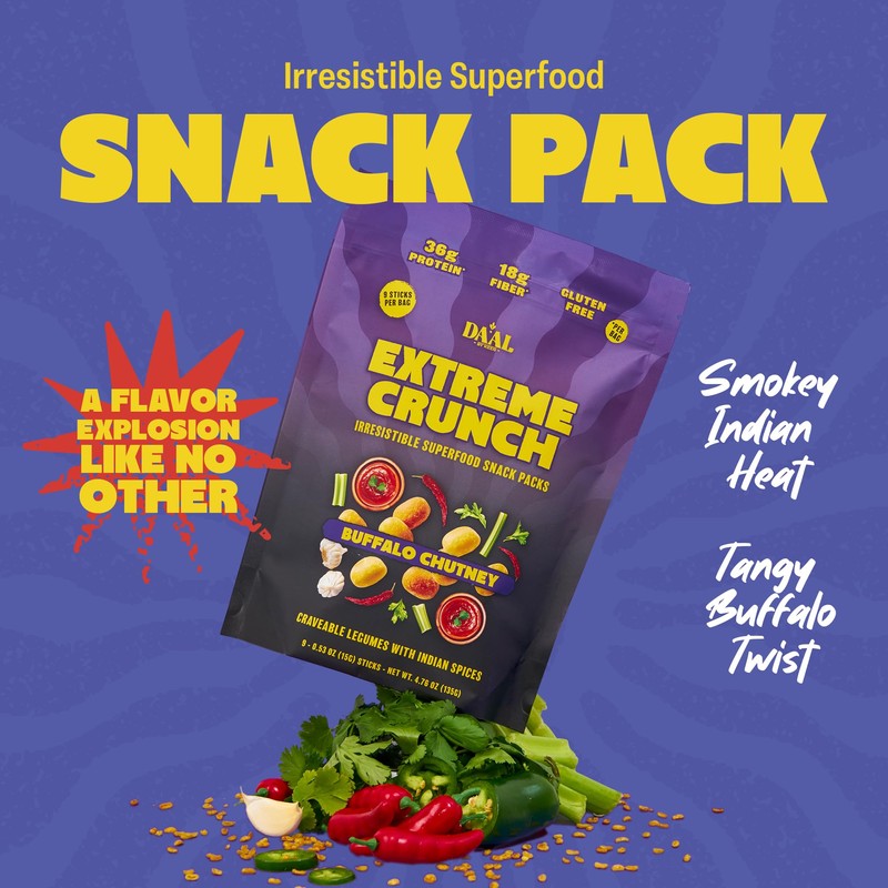 Daal By Keen Crunchy Mung Bean Snacks – Buffalo Chutney: Turn up the flavor and crunch with Daal By Keen Buffalo Chutney Mung Bean Snacks—a bold, East-meets-West fusion of spicy Indian masala, classic American buffalo heat, and a hint of brown sugar. Each bite delivers an addictively savory-sweet experience with the irresistible crunch of roasted mung beans. Packed with 5g of plant-based protein and 4g of fiber per serving, these nutrient-dense snacks are designed to keep you full longer while supporting digestion and steady energy throughout the day. They’re light on the stomach but big on fuel—making them perfect for mid-day snacking, post-workout recovery, or clean energy between meals. These lightly fried and roasted legumes are seasoned with custom-blended spices rich in antioxidants and minerals like potassium and magnesium. Vegan, gluten-free, and nut-free, they’re made without artificial ingredients—so you can snack with confidence and crave-worthy satisfaction. Whether you're topping your soups, hummus, avocado toast, grain bowls, or enjoying them straight from the bag, this snack adds bold flavor and crunchy texture wherever you need it. Add them to your lunchbox, share them with friends, or keep a bag in your gym bag for smart snacking on the go. Crafted by a passionate Indian home chef and inspired by the traditional namkeens of Indian street food, Daal By Keen reimagines classic snacks with a modern, health-focused twist. With three 4.76 oz resealable bags in every order, this global fusion snack is ready when you are—anytime, anywhere.
