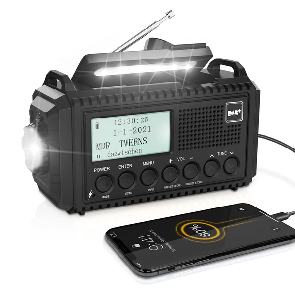 DAB+/DAB/FM Wind up Solar Radio, 5000mAh Digital Radio with LCD Display, Hand...