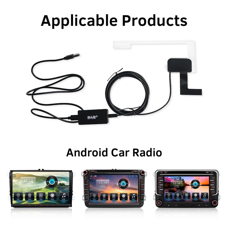 • For Android car radio: DAB frequency range 170-240 MHz. Receiver sensitivity: -99dBm. Compatible with Android 5.1 and higher systems, not compatible with WinCE systems