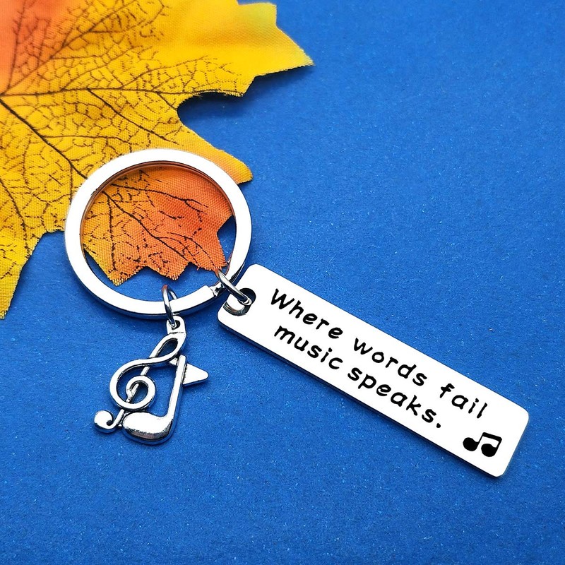- Gift for Musicians:"Where words fail music speaks"Keychain.Unique words express the music lovers feeling,sometimes, the heart feeling is hart to express but music can.Make an emotional gift for music lover.