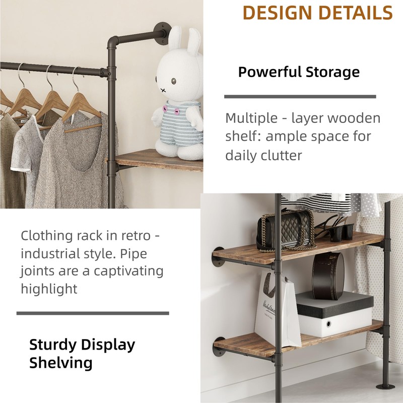 - Sturdy Industrial Design: The Industrial Pipe Clothing Rack combines a rugged metal pipe construction with a stylish finish, providing a durable and visually appealing solution for your clothing storage needs. Perfect for modern and vintage decor alike