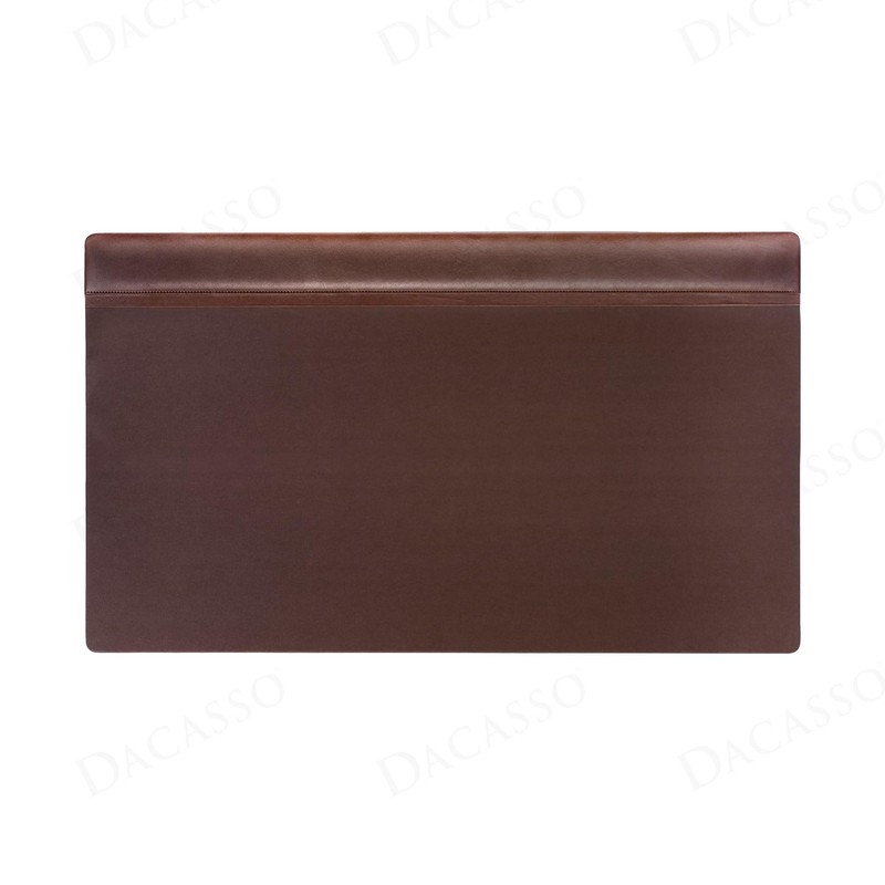 Dacasso 34" x 20" Chocolate Brown Leather Desk Pad with Top Rail - Executive Desk Surface Protector - Luxury Leather Blotter for Writing
