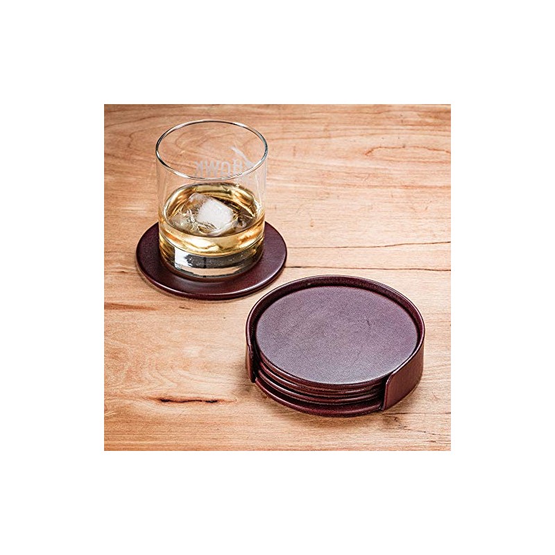 Dacasso Mocha Leather 4-Round Coaster Set