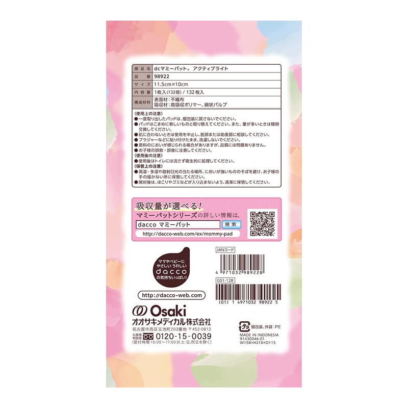 dacco 98922 Breast Milk Pad, Mummy Pat, White, Less Breast Milk, 132 Sheets