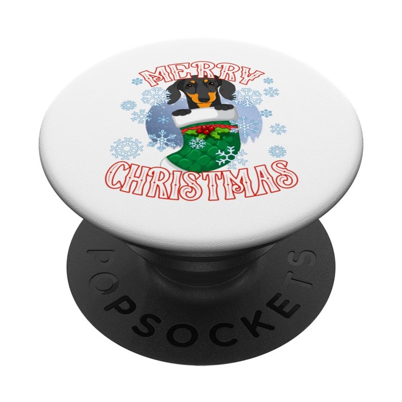 Dachshund Cute Dog In A Christmas Stocking Stuffer PopSockets Standard PopGrip