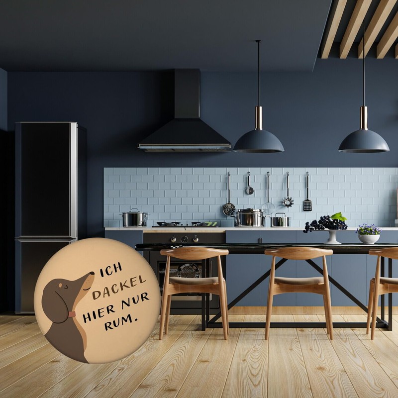 - A cute dachshund magnet that will add fun to any kitchen! With its cute "Ich dachshund hier nur rum-hier nur rum-" saying and the chilling dachshund motif, this round magnet is a real eye-catcher.