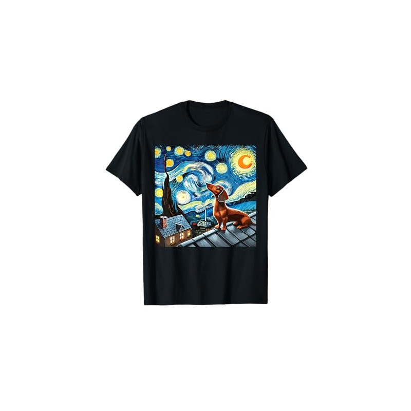 - Immerse yourself in the whimsical world of this Dachshund design, where a Dachshund meets a starry night sky. Ideal for showcasing your passion for Dachshunds and starry night skies.