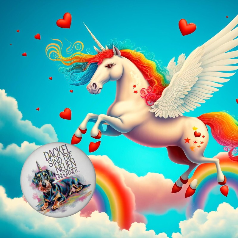 - The Dachshund Unicorn Magnet is round and features an imaginative design: a dachshund with unicorn horn and rainbow fur, on a background of pink and white. Above the cute dog is emblazoned in watercolour pastel tones the lettering Dachshund are the new unicorns. An eye-catcher for any fridge