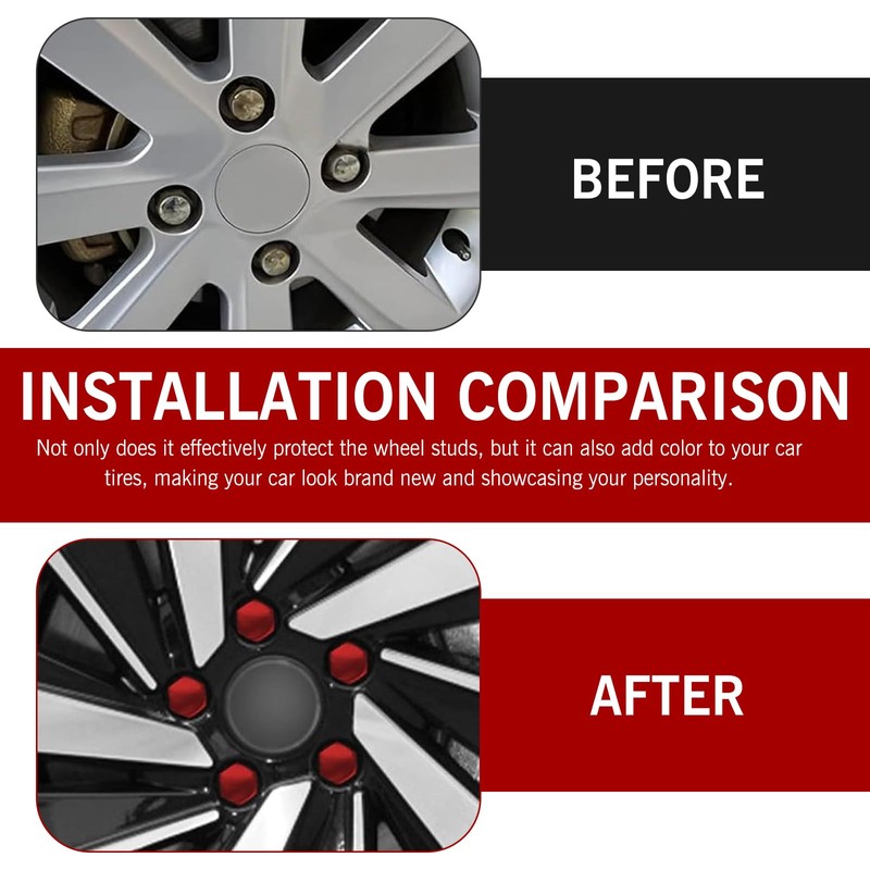 • Wide Compatibility: These wheel nut covers fit most vehicles equipped with 17 mm hex bolts or nuts. They have universal fitment and fit most cars with tire nuts. Always check your wheel nut size before purchasing to ensure fitment and avoid a poor fit.