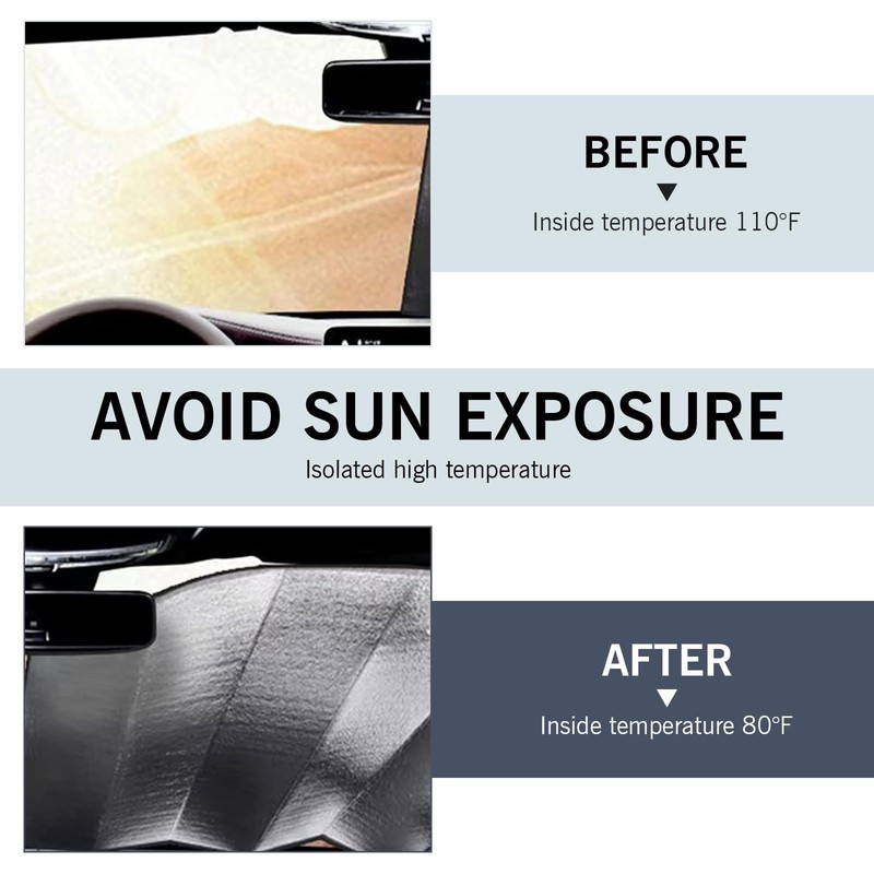 - Protective Function: This windshield cover also helps protect the interior of the car, including the car dashboard, steering wheel and chairs, reducing the unpleasant odors emitted by high temperatures and slowing down the aging process.