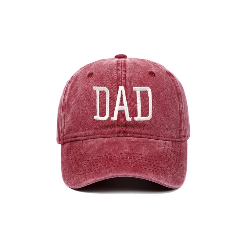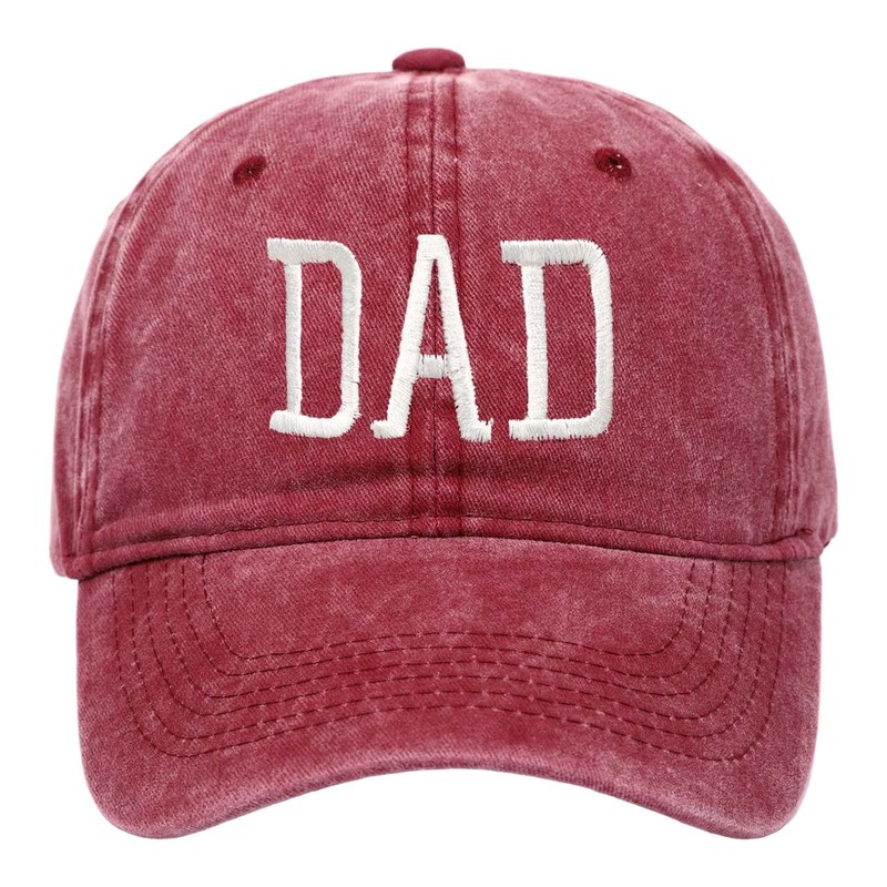 Dad 2025 Promoted to Daddy Established Hüte für Männer Gewaschene Distressed Baseballkappe Bestickte pigmentgefärbte Profil Baumwollkappe Head Cap (Wine One Size)