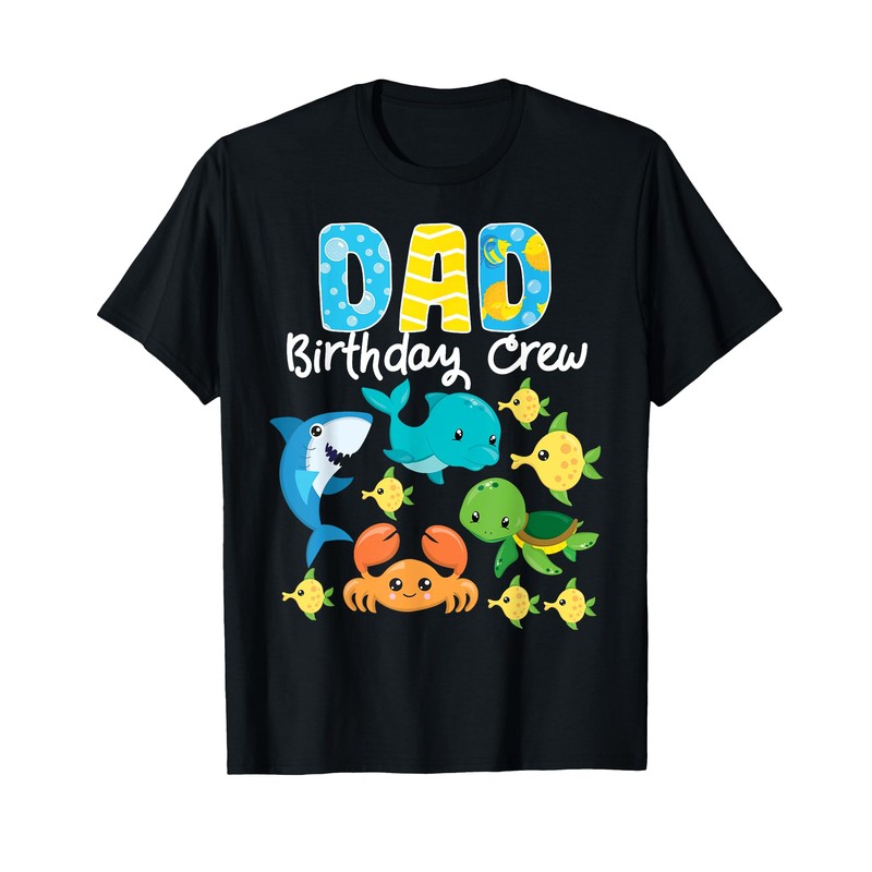 - This Dad Birthday Crew Birthday Party features an awesome design with dolphin shark coral fish sea turtle shark crab and the text Dad Birthday Crew. Your toddler, child, boy, or girl will love this ! Perfect birthday family matching idea.
