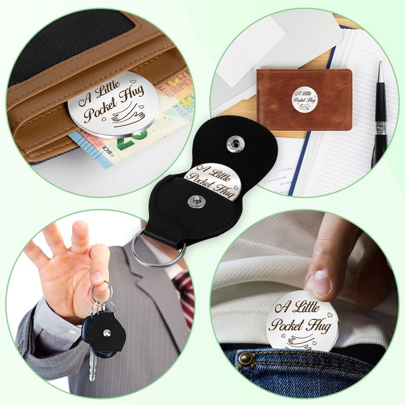 - 🎉Convenient to carry🎉Our double sided pocket hug token is a dismeter of 1.18 inch disk with a PU leather package which is 6.5 x 4.7 cm / 2.55 x 1.85 inch that can be easily put into your pockets, bags, wallets and more. The hug sign is made of stainless steel; sturdy and durable, not easy to rust, fade or deform. Eco-friendly PU leather material, suitable for long-term use. You will receive a stainless steel pocket hug token and a PU leather keychain for easy carry and control.