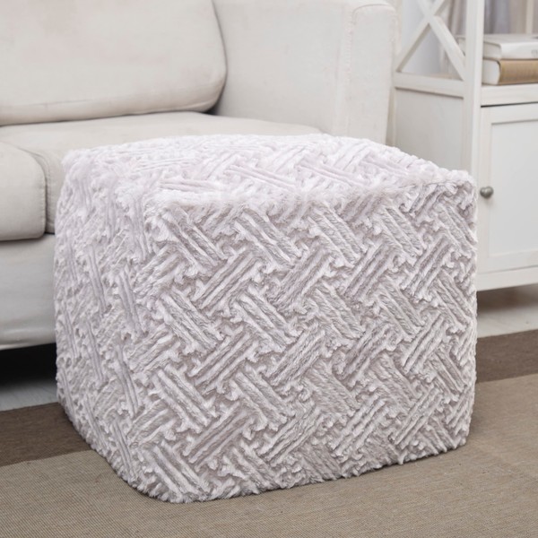 DaDalogy Bedding Lavender Grey Faux Fur Ottoman Pouf Cover [NO Insert] - Soft Cozy Geometric Décor with Zipper- 1-Piece 18" x 18" x 18"