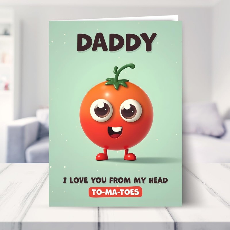 - This "I Love You Tomatoes" daddy birthday card is not just a card; it's a burst of joy! With vibrant colours and a funny tomato pun, it's sure to bring a big smile and laughter, making your daddy feel extra special.