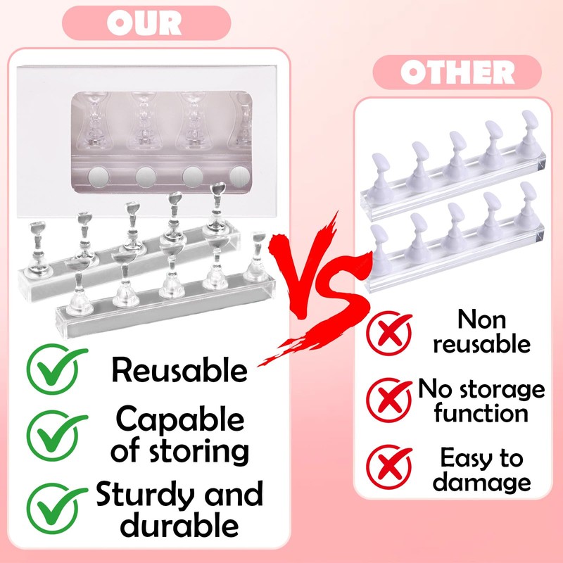 - Nail Tip Holder: This versatile nail accessory set is ideal for practicing nail art, displaying designs, or holding press on nails securely during application for a professional finish