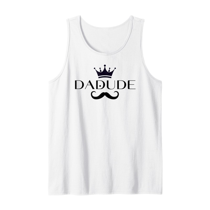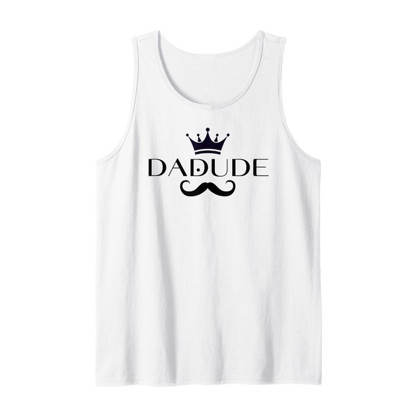 Dadude Funny Dad Crown and Mustache Tee for Cool Father's Tank Top