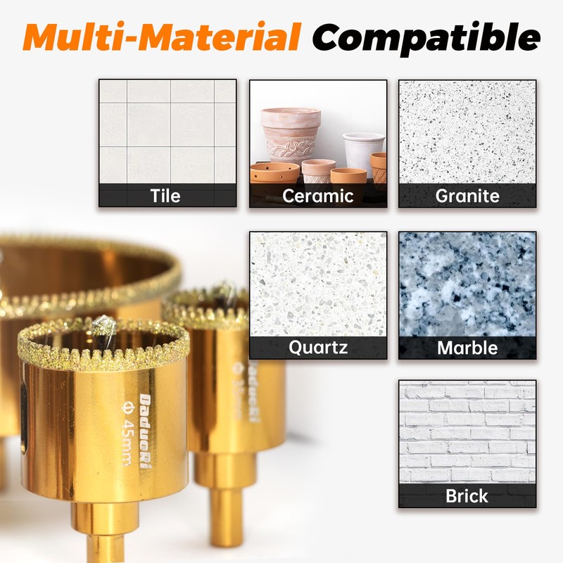 - 【Upgraded High Quality】Compared to standard diamond hole saws, our newly diamond bits features sharper serrated edges and coarser diamond grit. With an enhanced diamond coating, a more robust one-piece steel body, and advanced double-layer surface treatment, it ensures durability, aesthetics, and wear resistance