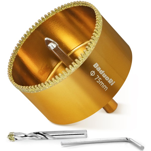 DaduoRi 3" Serrated Diamond Hole Saw with 2Pcs Removable Pilot Bits, Easy-Ali...