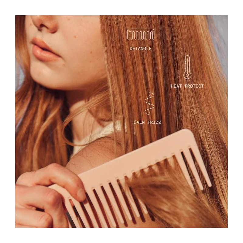 - BENEFITS: Detangles and conditions. Tames frizz and adds shine. Heat protects and primes up to 450F.