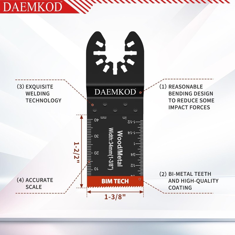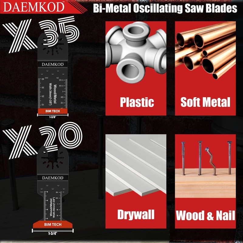 • 【Wider range of use】Bi-metal multi tool blades kits can cut soft metals, hard wood, PVC, copper-pipes, and hard plastics. It can be used for house decoration, door and window repair, floor cleaning, bathroom decoration and other scenes.