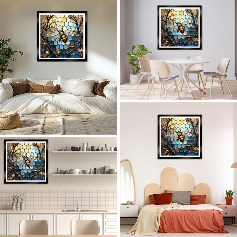 DAERLE Stained Glass Bee Diamond Painting, 5D Diamond Art Kits Honey Bee, Diamond Painting Kits for Adults, Diamond Art Kits Diamond Picture Arts for Home Wall Decor 30x30cm