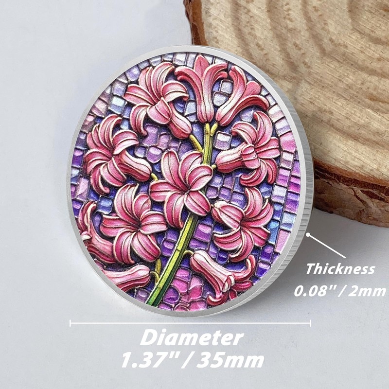 - 🤲Showcasing the Front Design: The front of the coin features a beautifully detailed hyacinth flower in a stained-glass style, symbolizing rebirth, sincerity, and the renewal of hope. The intricate design and soft pink hues evoke feelings of peace and serenity, highlighting the flower's representation of resilience and the gentle strength found in recovery.