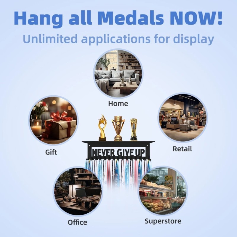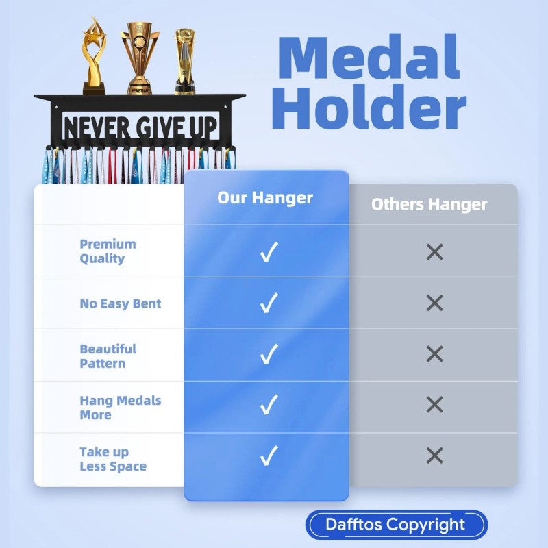 Sturdy & Durable Construction: Made from high-quality materials to securely hold your medals, trophies, and awards.