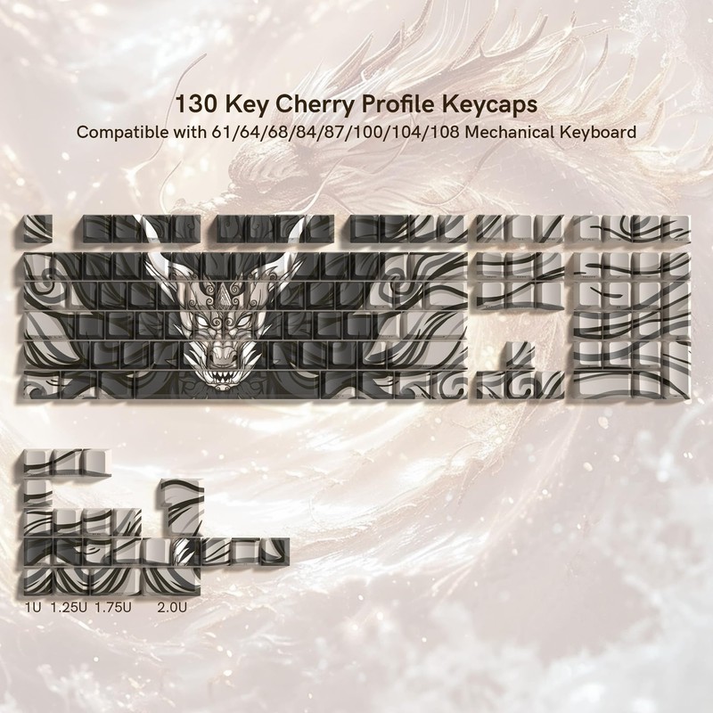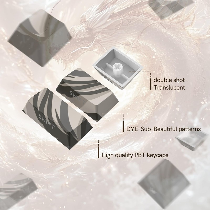 dagalagoo PBT keycap,Side Printed keycaps 60 percen,Light Beige Dragon,Cherry Profile Keyboard keycap,Shine Through keycap for Mechanical Gaming Keyboards(130 Key,only keycaps)