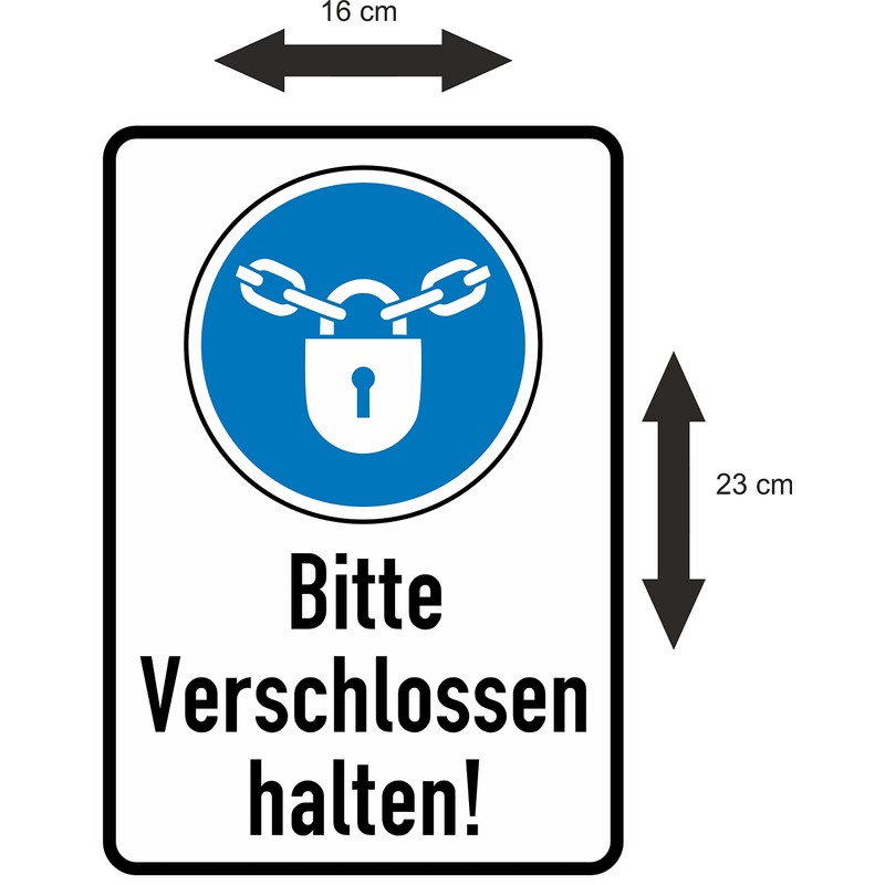 Daged Please keep closed sticker, 23 x 16 cm, safety sign sticker, T-149