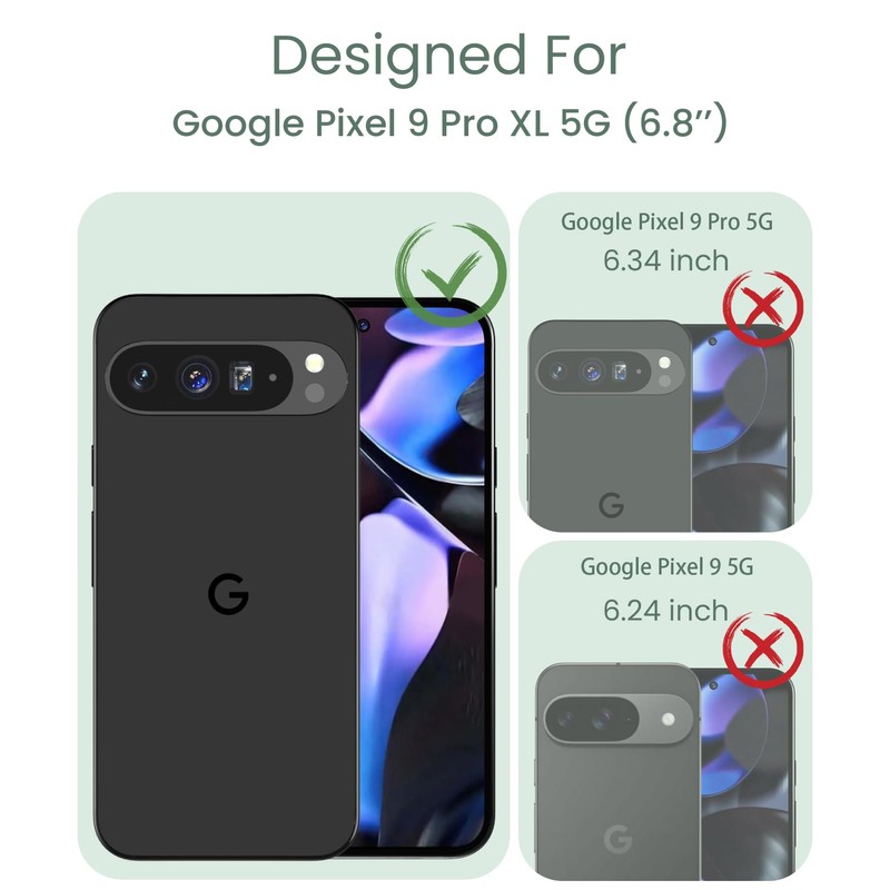 - Compatible models:ONLY designed for Google Pixel 9 Pro XL 6.8 inch (2024 release) with 2 Pack Tempered Glass Screen Protector,Please check your phone model before placing an order (Refer to image 2) .If any product issues, such as incompatible phone model, product not as expected, Please contact us through the Amazon Message Center.