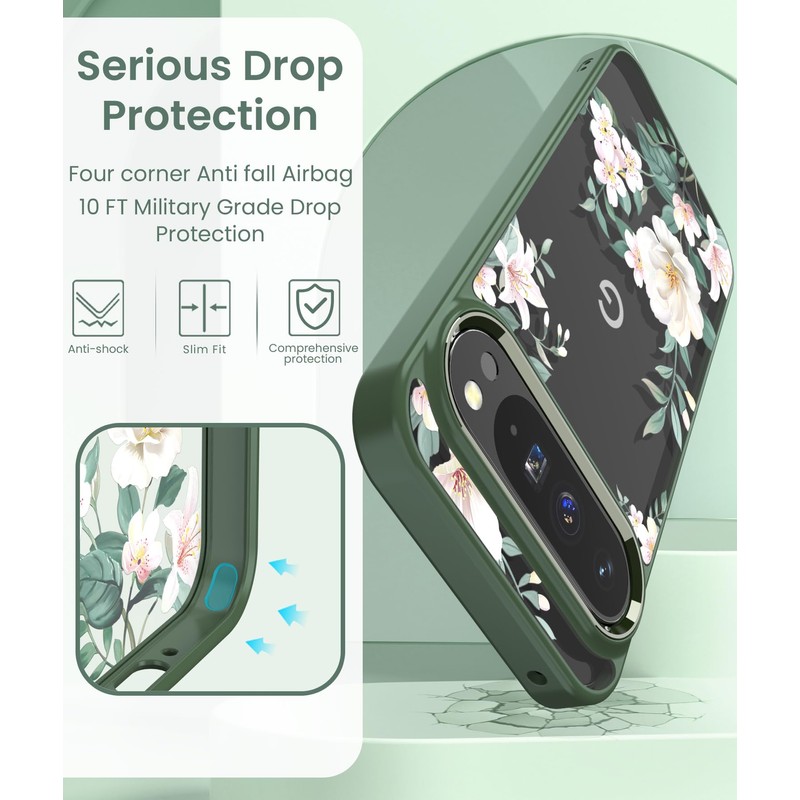 DagoRoo for Google 9 Pro XL Case+Tempered Glass Screen Protector, [Military Grade Protective] Slim Soft TPU & Hard PC,Girls Women Crystal Clear Flower Pattern Case Cover for Pixel 9 Pro XL-Magnolia