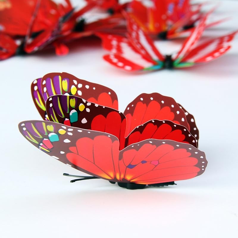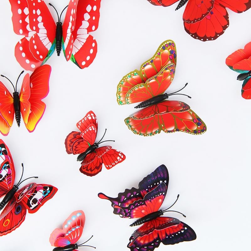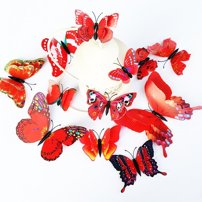 DaGou Mixed of 12PCS 3D Pink Butterfly Wall Stickers Decor Art Decorations¡ (Red)