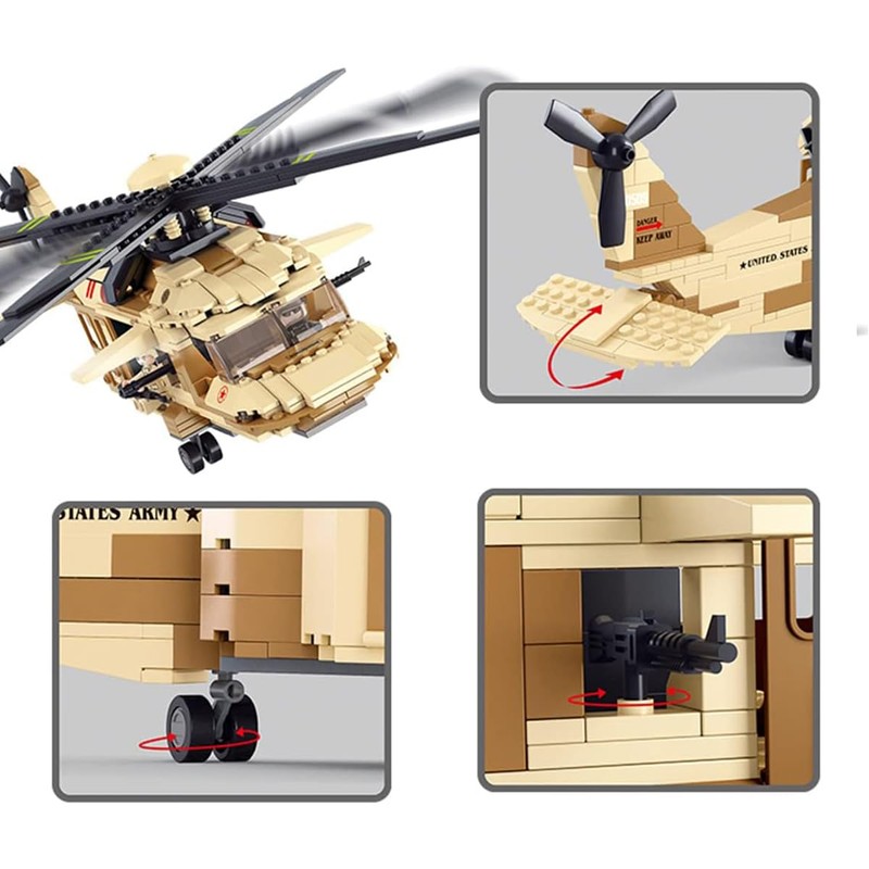 - Enjoy Assembly: Includes 439 pieces building bricks and army figures. Black Hawk is a four-rotor, twin-engine utility helicopter, build your own military army team model kit.