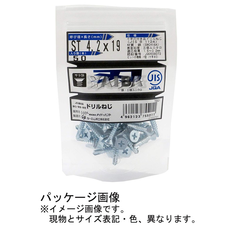 DAIDOHANT 10175520 YAIBA (JIS Standard) Uniqlo Drill Screw [Countersunk Head] (Nominal Diameter d) 0.17 x (L) 0.6 x 0.6 inches (4.2 x 16 x 8.2 mm) (50 Pieces)