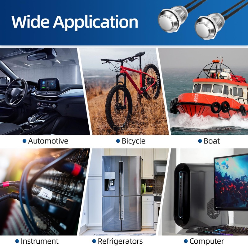 - Application: This marine push button switch is suitable for automotive, car, boat, ship, home appliance, industrial equipment, etc.