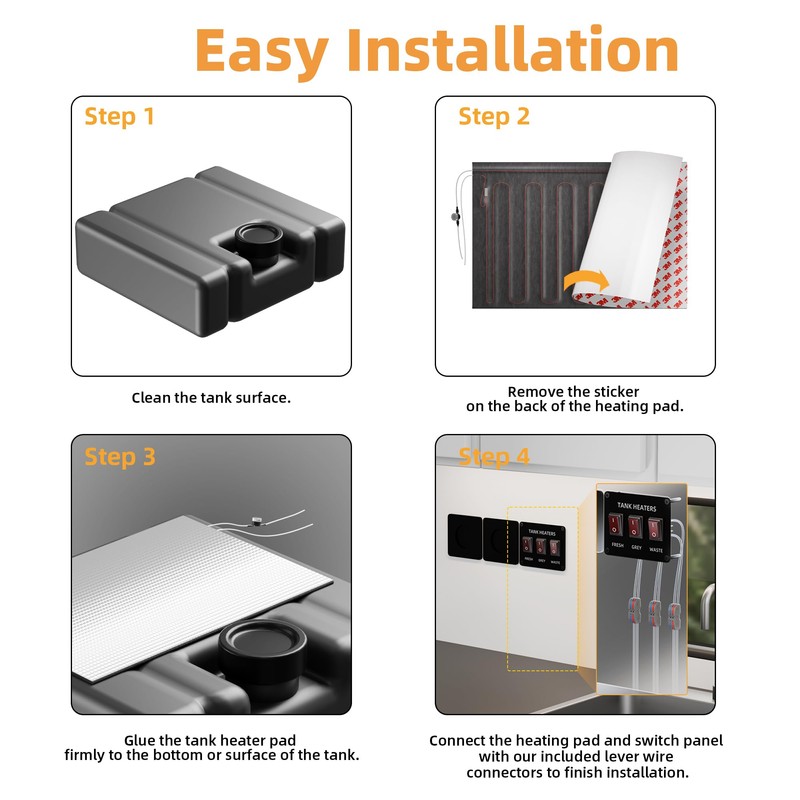 - Switch Panel for Easily Control: Our rv holding tank heater pad will come with a 3 way switch panel for easily control, you can separately control the heating pad as needed, which is easy and convenient for long term use.