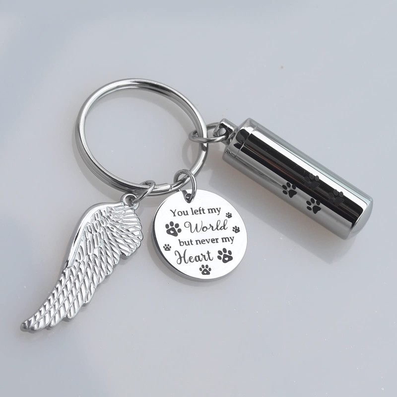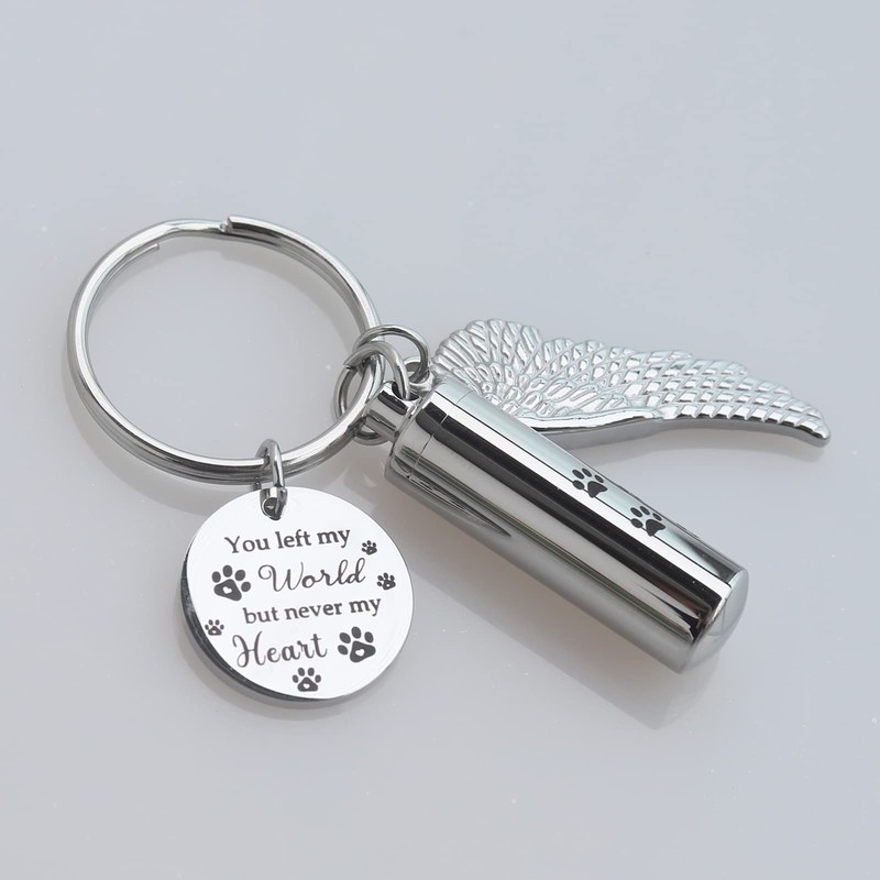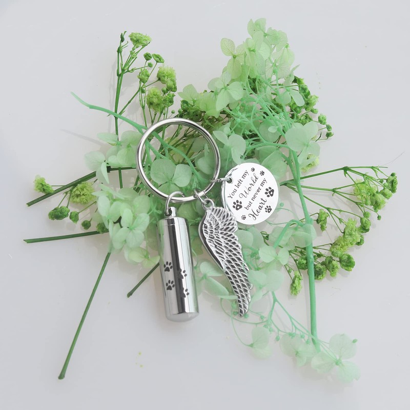 DAIFFUNE Cylinder Urn Keychain for Ashes Pet Cremation Keychain Dog Ash Necklace Cat Urn Necklace-You left my world but never my heart.
