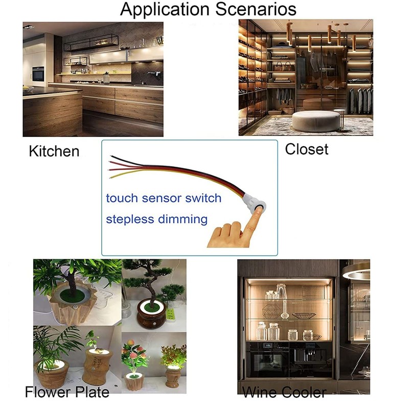 Daiilg 2Pcs Touch Dimmer Switch DC3.7V 5V 12V Stepless Dimmer Switch Sensor for LED Light, RV, Cabinet, Wardrobe and Strip
