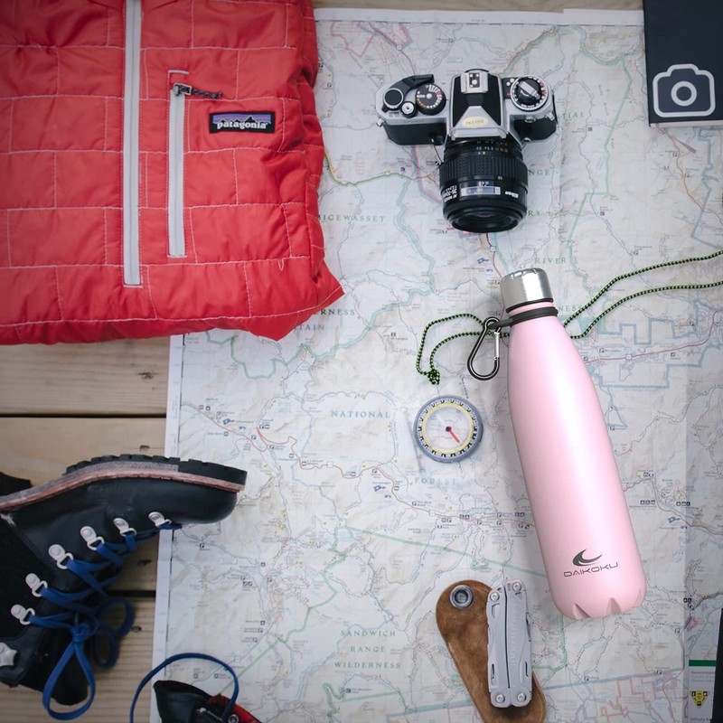 Daikoku Stainless Steel Bottle + Adjustable Strap + Carabiner, BPA Free Doubl...