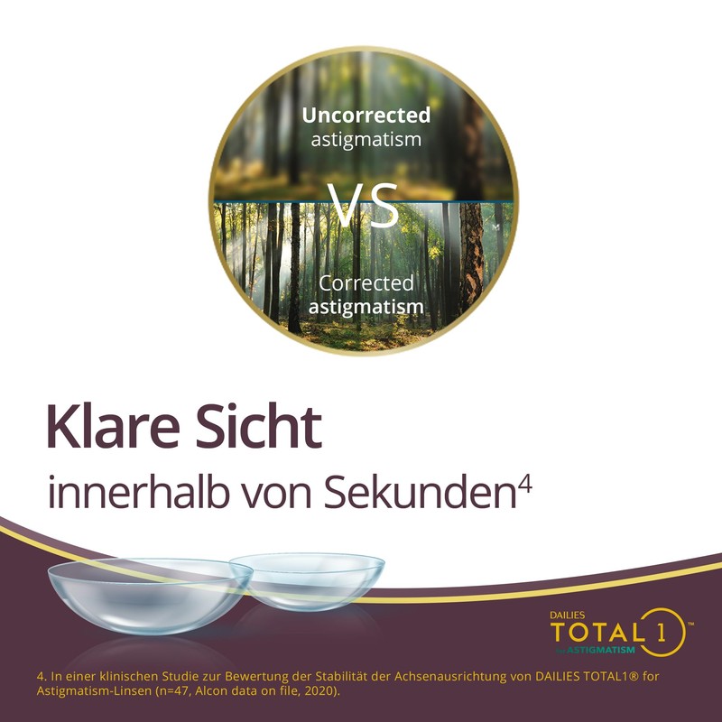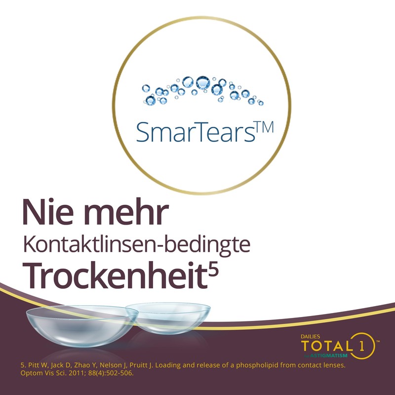 • DAILIES TOTAL1 for Astigmatism are one-day contact lenses