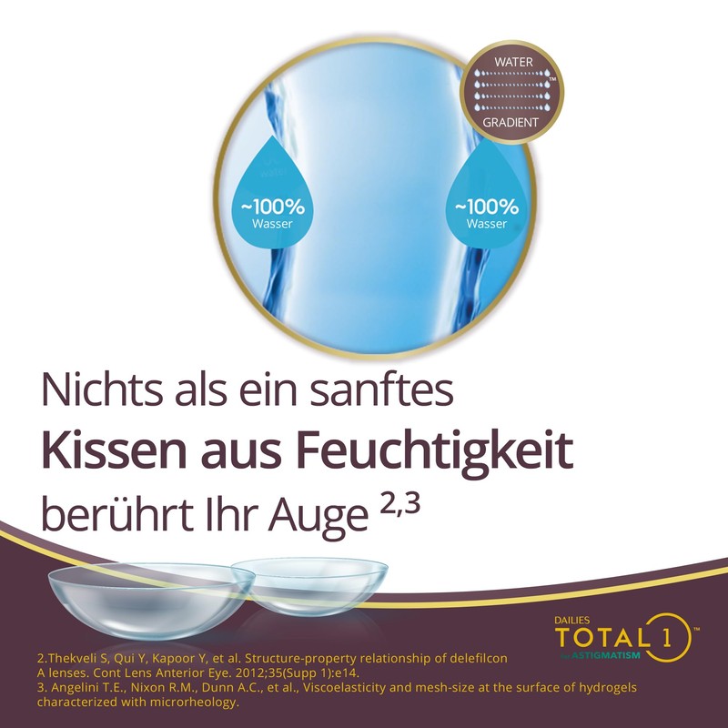 Dailies Total1 for Astigmatism Daily Lenses, Soft, Pack of 30, BC 8.6 mm, DIA 14.5 mm, CYL 0.75, Axis 160, -06.50 Dioptres