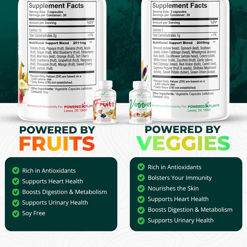 Daily Fruits and Veggies Supplement - 180 Capsules for 30 Days, Non GMO & Gluten Free Superfood with Natural Vitamins - Powered by Plants, 2-Pack