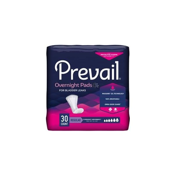 Daily Pads Overnight 16 Inch Length Heavy Absorbency Polymer Core One Size Fits Most Adult Female Disposable 30ct