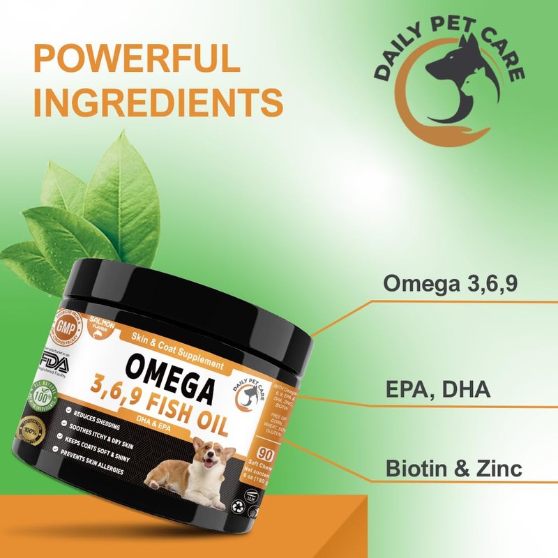 Daily Pet Care Omega 3, 6, 9 Fish Oil for Dogs | Salmon Oil Soft Chews for Dogs to Prevent Skin Allergies & Support Itchy Dog Skin Relief With Dog Treats | Dog Supplements With Salmon Oil for Dogs UK