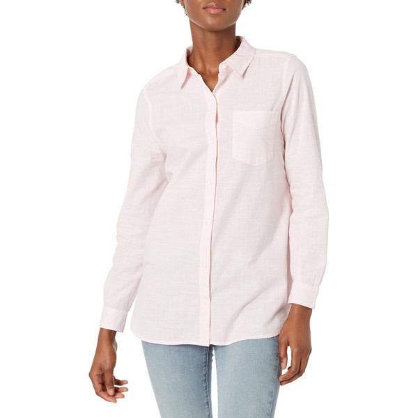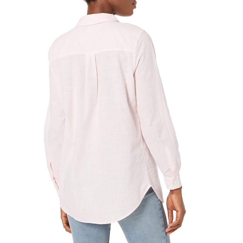 Daily Ritual Women's Broken-in Cotton Long-Sleeve Button-Front Tunic, Light Pink Stripe, Medium