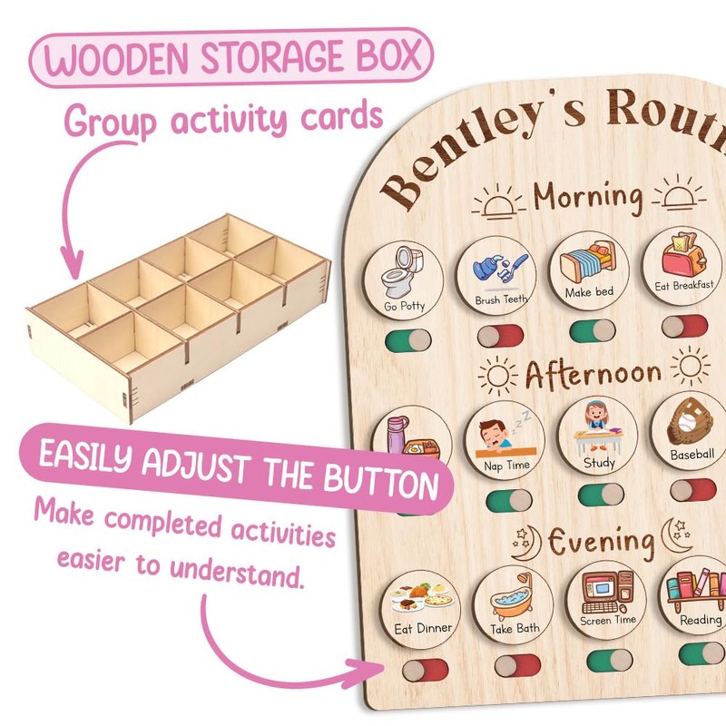- VISUAL SCHEDULE FOR KIDS: Our wooden chore chart helps reinforce the daily routine concepts of morning, afternoon, and evening for children in an engaging way