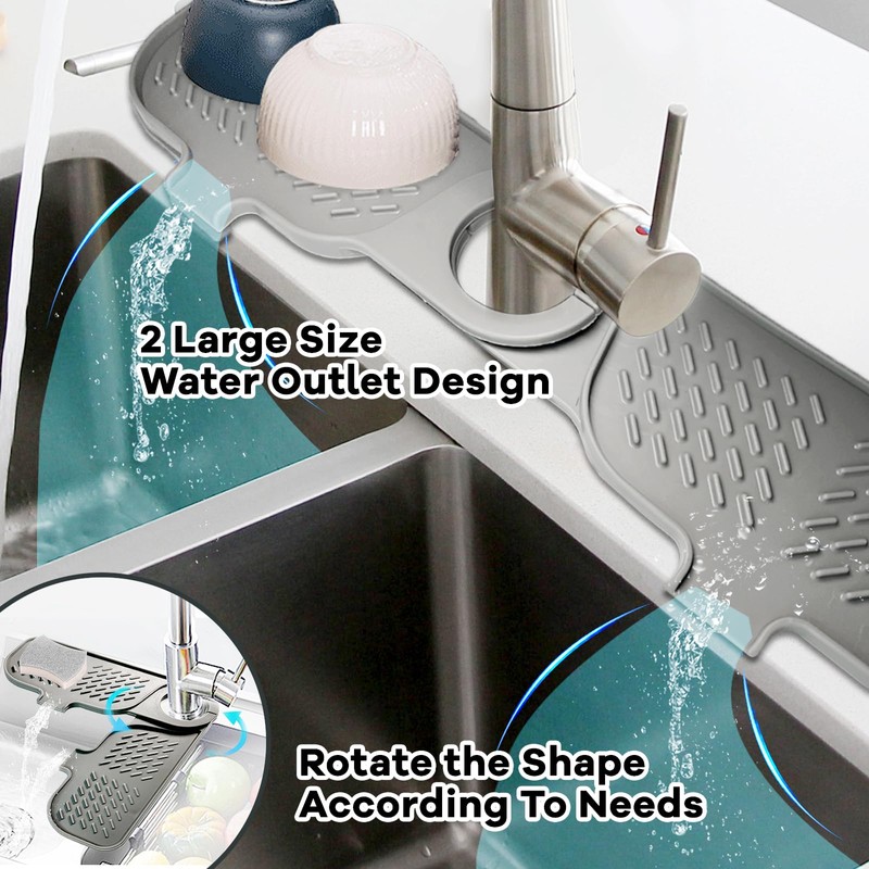 Daily Treasures 2-Pack Rotatable Silicone Faucet Splash Guard, 5° Large Slope Sink Splash Guard, (9.75"x3.9") Splash Guard for Sink Faucet Mat for Bashroom Kitchen Sink (Grew)