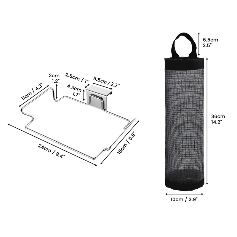 - 【Easy Hang Installation】Just hang the over the door trash holder on the cabinet door, without hardware or drilling. The size of trash holder holder cabinet is 9.4 x 5.9 x 1.77 inch. Suit for cabinet door thickness less than 0.9 inch